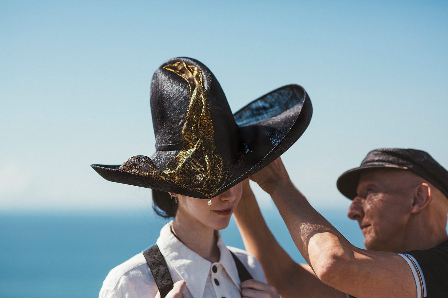 Q. There is a prevailing myth that the traditional Welsh ‘Het’ was a Victorian invention, forming part of the ‘imagined’ Welsh heritage and identity. You have morphed this into a transparent cocktail hat containing a yellow pavé daffodil, which is Wales’ national emblem. How would you say hats reinforce an intrinsic sense of identity?